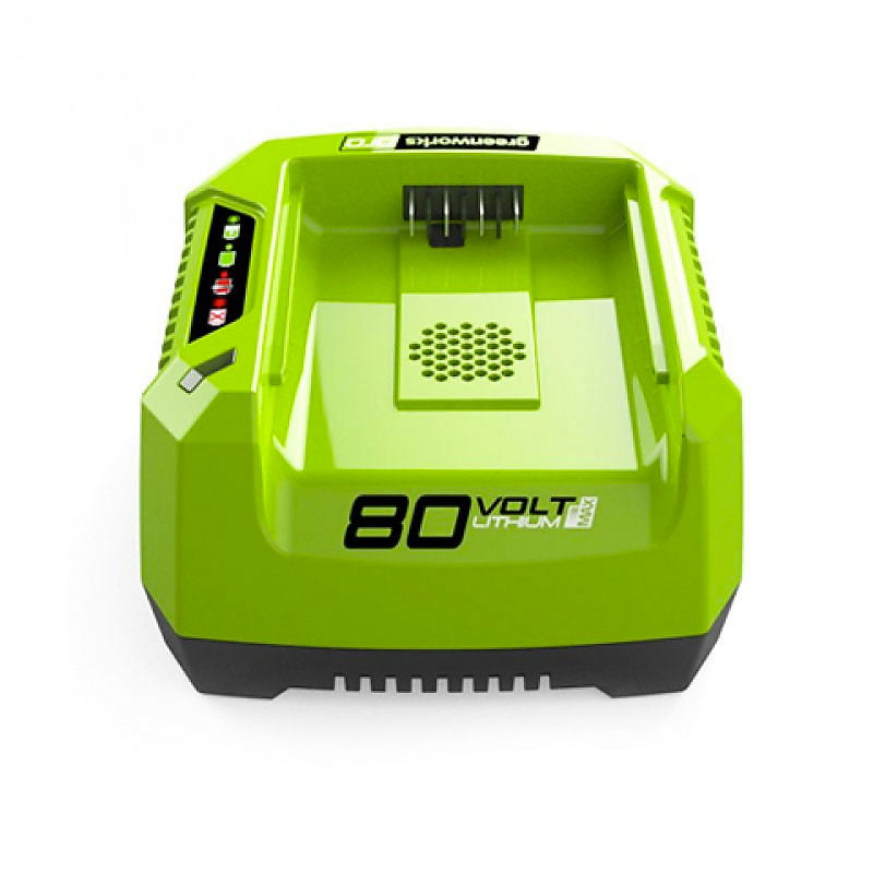 Зарядное устройство greenworks 80v g80c, садовая техника. • Совместимость с аккумуляторными батареями линейки 80V PRO • Система защиты от перезаряда аккумулятора • Индикатор уровня заряда • Время зарядки аккумулятора 80 В 2 А*ч – 28 мин • Время зарядки аккумулятора 80 В 4 А*ч – 56 мин • Проушины для крепления на стену • Питание: 220/230 В Зарядное устройство Greenworks G80C предназначено для зарядки литий-ионных аккумуляторных батарей G80B2 (2 А*ч, арт. 2901207) и G80B4 (4 А*ч, арт. 2902407) для техники серии 82V Commercial. Данная модель обладает индикатором уровня заряда и системой защиты от перезаряда аккумулятора. При достижении 100 % заряда питание автоматически отключается. Снабжён перфорацией для защиты от перегрева и прорезиненными ножками для устойчивости на плоскости. Предусмотрены проушины для крепления на стену. Комплектация: 1. G80C 80V зарядное устройство, арт. 2902507 2. Руководство по эксплуатации Тип устройства Зарядное устройство Напряжение, В 80 Тип аккумулятора Литий-ионный Ширина (упаковки), см 23,5 Длинна (упаковки), см 19,5