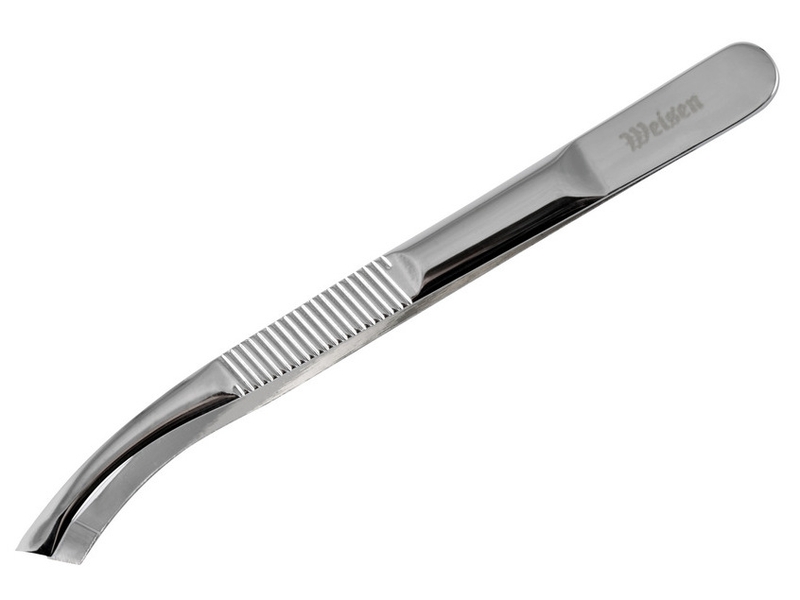 Пинцет ktw-572 изогнутый и скошенный, хром/блестящий.