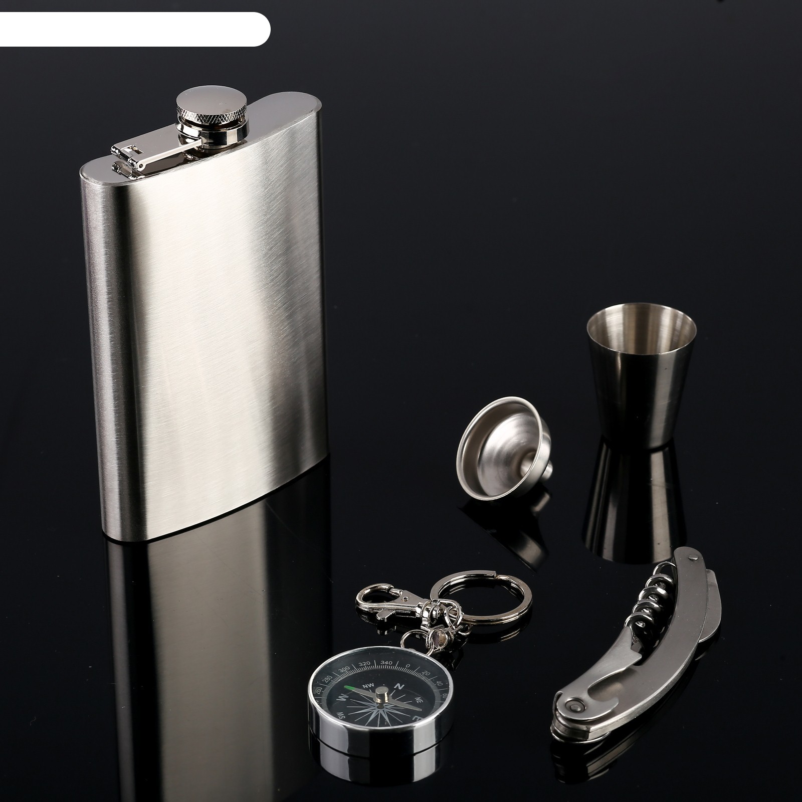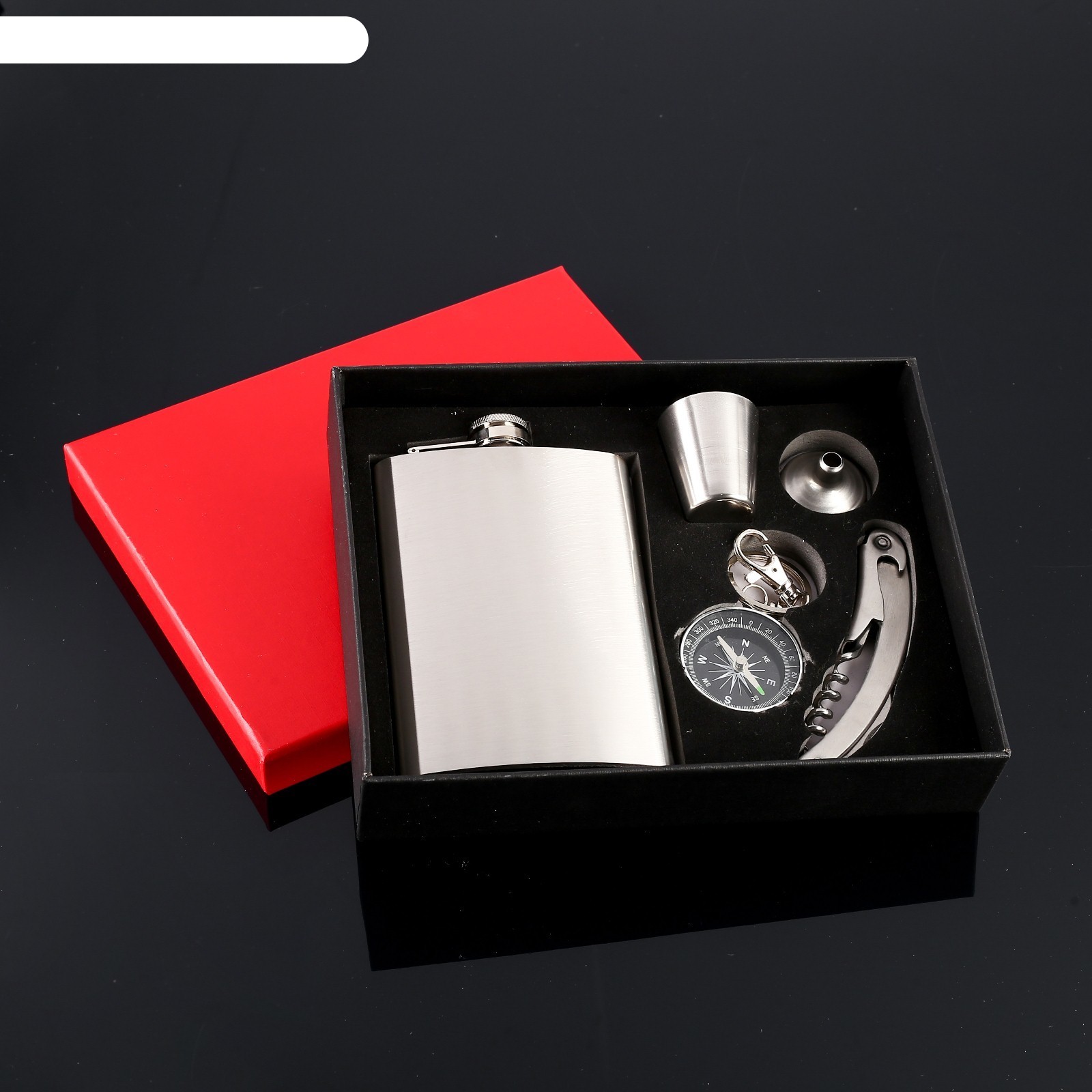 Подарочный набор 5в1 металлический: фляжка 270 мл, рюмка, компас, нож 3в1,