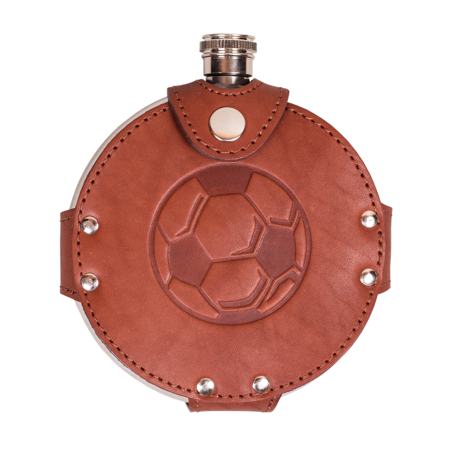 Фляга круглая 0,24 л. в чехле из натуральной кожи