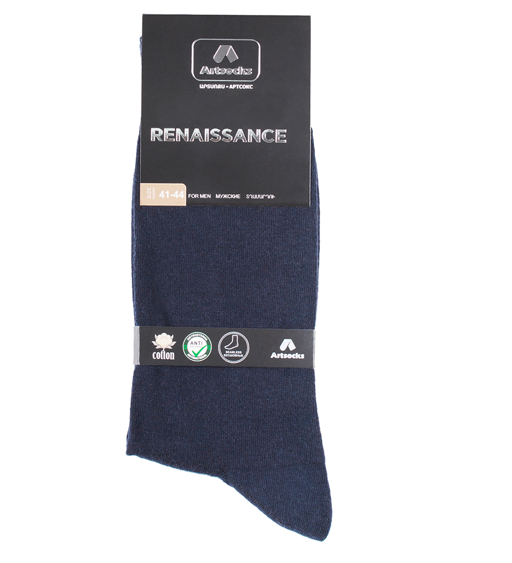 Носки мужские renaissance asm-0010 41-44 синий (artsocks). Параметры товара Материал: хлопок - 90%, нейлон - 5%, лайкра - 5% Страна производства: Армения Страна бренда: Армения