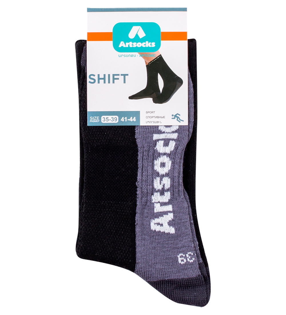 Носки спортивные shift ass-0009 35-39 черный (artsocks). Параметры товара Материал: хлопок - 80%, полиэстер - 15%, лайкра - 5% Страна производства: Армения Страна бренда: Армения