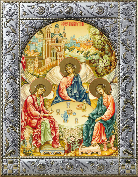 Рамка икон выполнена из металла, покрытого серебром. На окладе имеется штамп по европейскому стандарту.