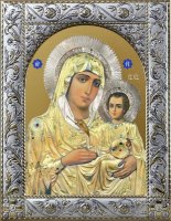 Новинка. Рамка икон выполнена из металла, покрытого серебром. На окладе имеется штамп по европейскому стандарту. Каждое изделие изготавливается с использованием традиционной ручной обработки с использованием драгоценных металлов и высококачественных материалов, полученных по новейшим технологиям. MIRO SILVER- это новый металл, который придает покрытию поверхностную обработку, включающую в себя и большую стойкость к окисляющему слою чистого серебра 999,95%, по сравнению с обычными покрытиями. Иконография выполнена минеральными красками по золочению методом UV печати на деревянной доске или МДФ.