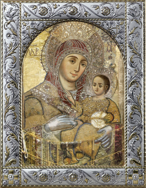 Новинка. Рамка икон выполнена из металла, покрытого серебром. На окладе имеется штамп по европейскому стандарту. Каждое изделие изготавливается с использованием традиционной ручной обработки с использованием драгоценных металлов и высококачественных материалов, полученных по новейшим технологиям. MIRO SILVER- это новый металл, который придает покрытию поверхностную обработку, включающую в себя и большую стойкость к окисляющему слою чистого серебра 999,95%, по сравнению с обычными покрытиями. Иконография выполнена минеральными красками по золочению методом UV печати на деревянной доске или МДФ.