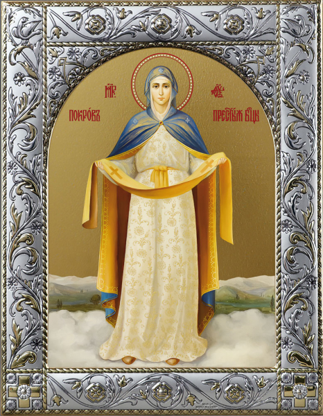Новинка. Рамка икон выполнена из металла, покрытого серебром. На окладе имеется штамп по европейскому стандарту. Каждое изделие изготавливается с использованием традиционной ручной обработки с использованием драгоценных металлов и высококачественных материалов, полученных по новейшим технологиям. MIRO SILVER- это новый металл, который придает покрытию поверхностную обработку, включающую в себя и большую стойкость к окисляющему слою чистого серебра 999,95%, по сравнению с обычными покрытиями. Иконография выполнена минеральными красками по золочению методом UV печати на деревянной доске или МДФ.