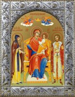 Новинка. Рамка икон выполнена из металла, покрытого серебром. На окладе имеется штамп по европейскому стандарту. Каждое изделие изготавливается с использованием традиционной ручной обработки с использованием драгоценных металлов и высококачественных материалов, полученных по новейшим технологиям. MIRO SILVER- это новый металл, который придает покрытию поверхностную обработку, включающую в себя и большую стойкость к окисляющему слою чистого серебра 999,95%, по сравнению с обычными покрытиями. Иконография выполнена минеральными красками по золочению методом UV печати на деревянной доске или МДФ.