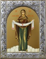 Новинка. Рамка икон выполнена из металла, покрытого серебром. На окладе имеется штамп по европейскому стандарту. Каждое изделие изготавливается с использованием традиционной ручной обработки с использованием драгоценных металлов и высококачественных материалов, полученных по новейшим технологиям. MIRO SILVER- это новый металл, который придает покрытию поверхностную обработку, включающую в себя и большую стойкость к окисляющему слою чистого серебра 999,95%, по сравнению с обычными покрытиями. Иконография выполнена минеральными красками по золочению методом UV печати на деревянной доске или МДФ.