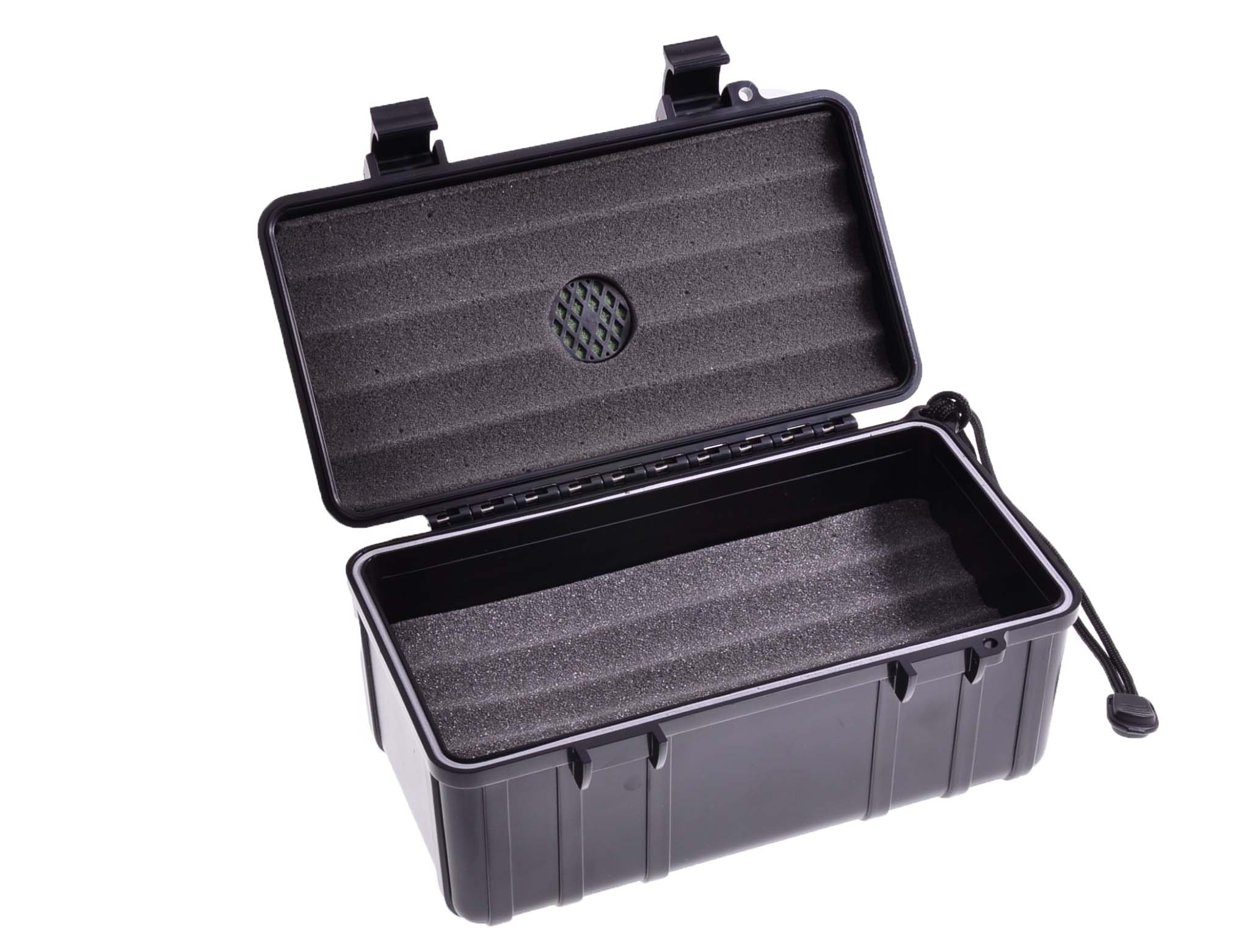Хьюмидор дорожный на 15 сигар от американской компании Cigar Caddy. Прочная и герметичная конструкция обеспечивает ударопрочность, водонепроницаемость и плавучесть изделия, что гарантирует полную сохранность сигар даже в экстремальных ситуациях. Корпус хьюмидора выполнен из специального особо прочного пластика с двумя замками, внутренние разделители выполнены из поролона, встроенный увлажнитель. Производитель оставляет за собой право без предварительного уведомления вносить незначительные изменения в конструкцию или комплектацию изделия с целью улучшения его свойств.