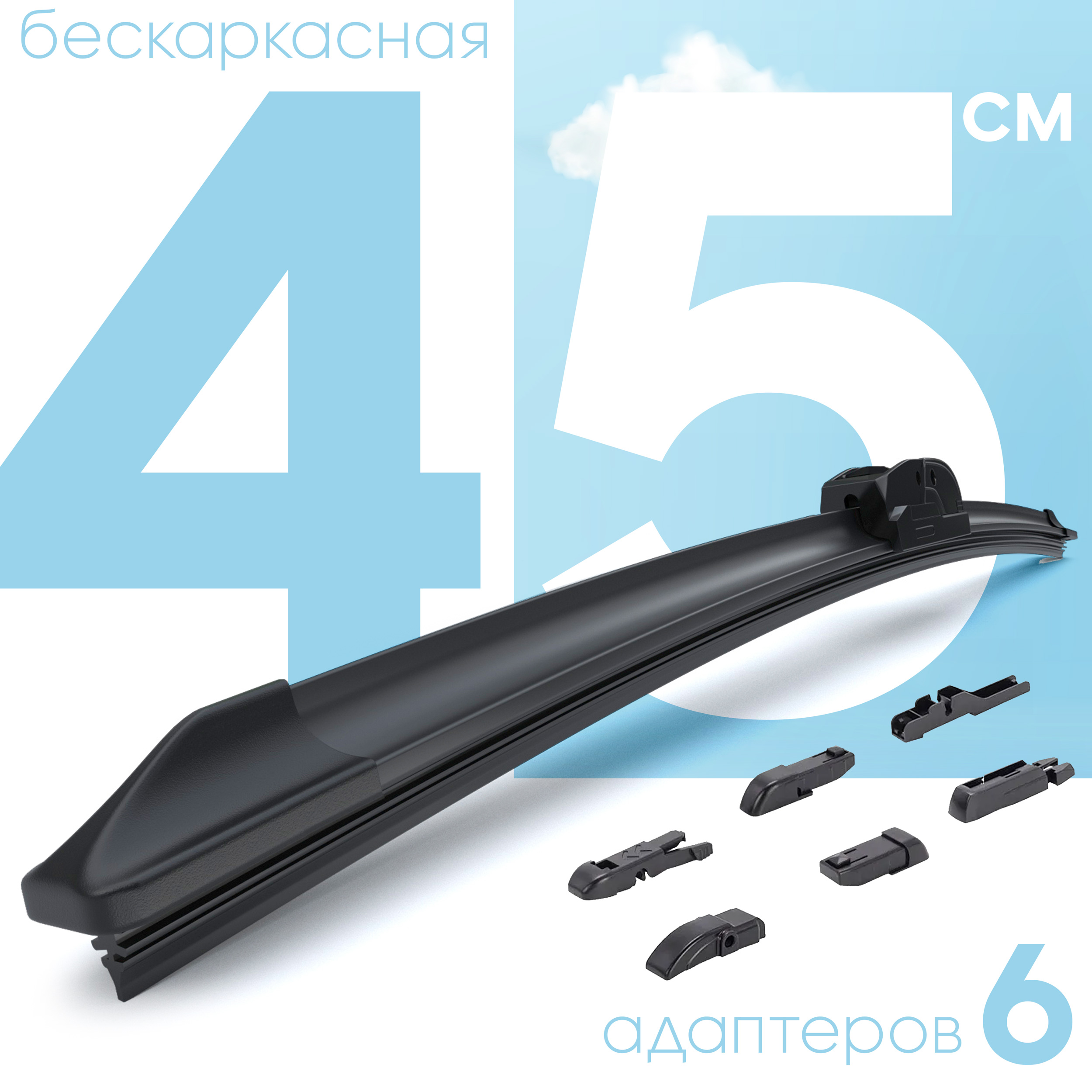 Бескаркасная щетка стеклоочистителя 45см с 6 адаптерами