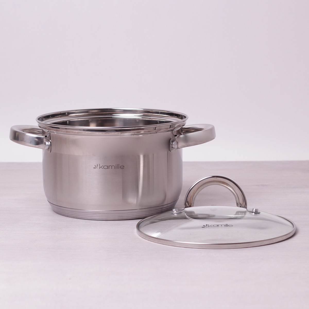 Кастрюля Kamille 2.5л из нержавеющей стали с крышкой и полыми ручками