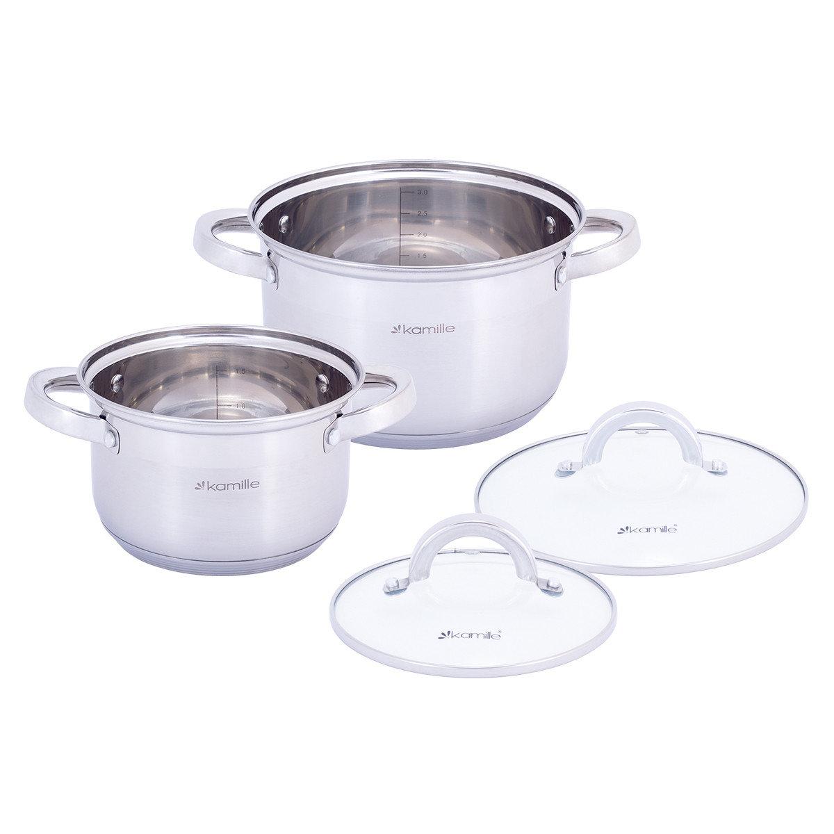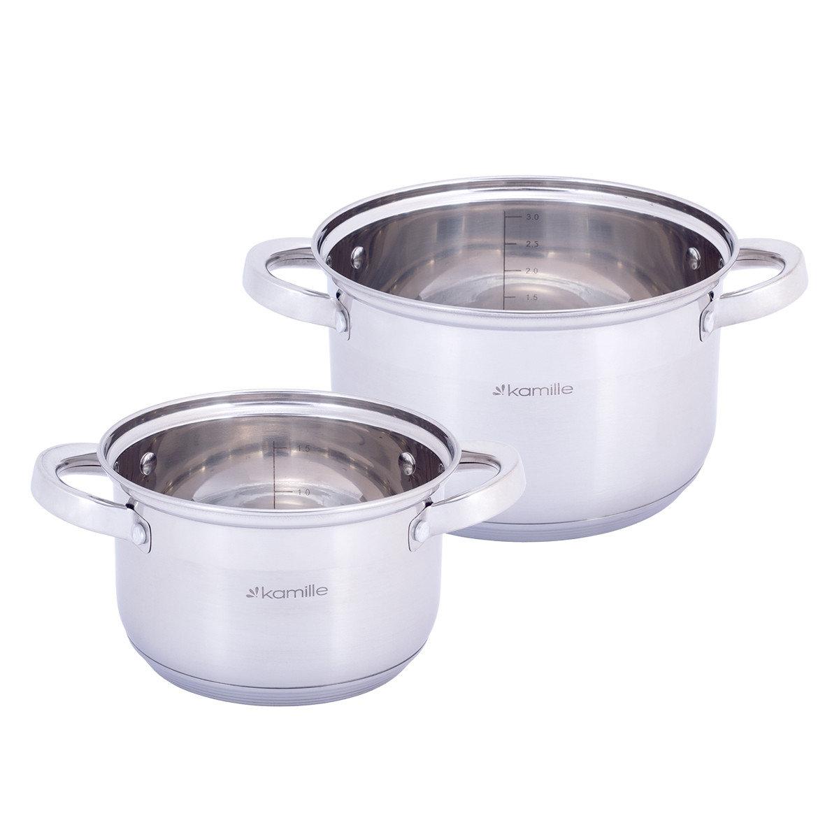 Набор кастрюль Kamille 4 предмета (2.1л, 3.8л; полые ручки) из нержавеющей