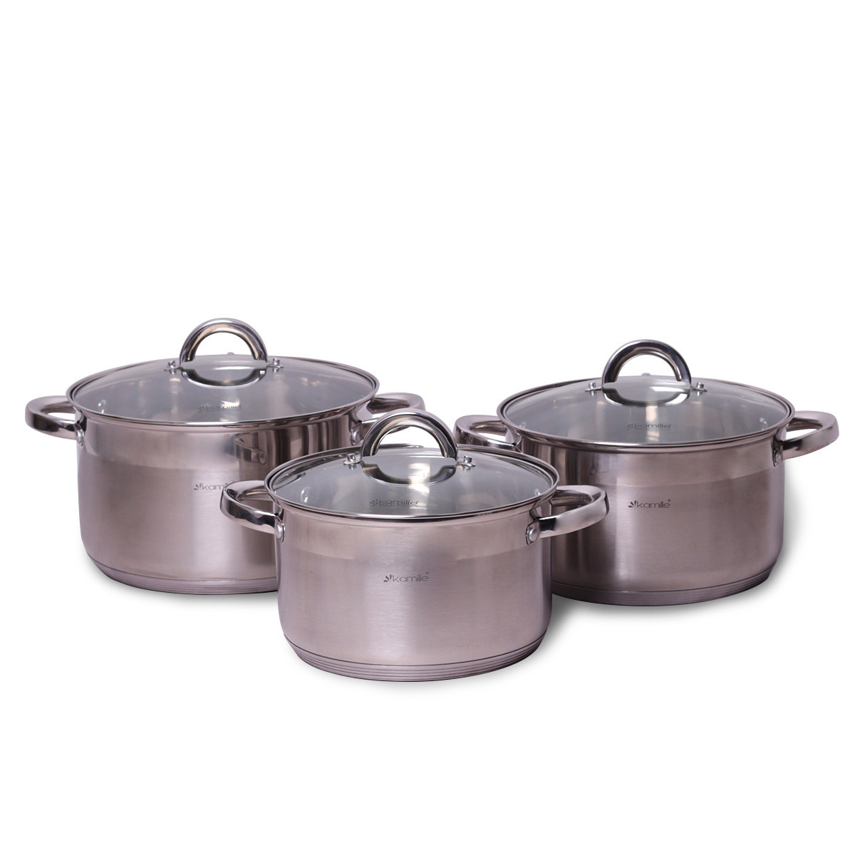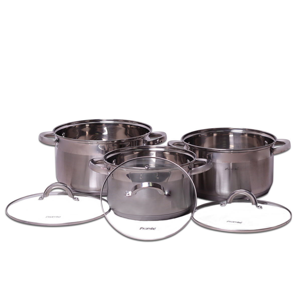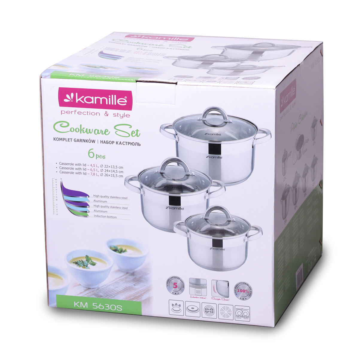 Набор кастрюль Kamille из нержавеющей стали 6 предметов (4.0л, 5.5л, 7.0л)