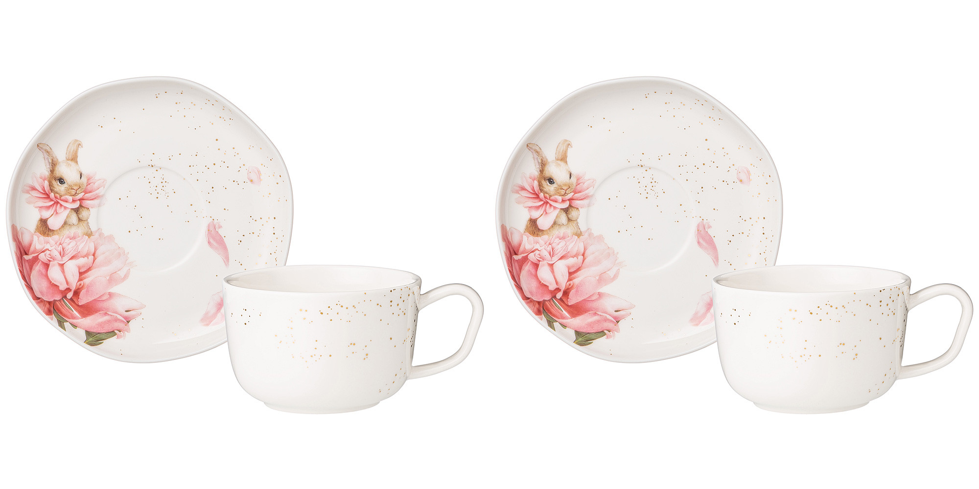Чайный набор посуды на 2 персоны 250 мл lefard sunday 4 предмета, 2 чашки и блюдца, подарочный фарфор. SUNDAY от ТМ LEFARD пополнилась эксклюзивной коллекцией милых Кроликов и нежных Цветов. Современные формы изделий из упрочненного фарфора, высококачественная деколь, стильные и «мимимишные» авторские рисунки с изящными золотыми брызгами, красочная упаковка… Все это делает кружки, чайные пары, стаканы с силиконовыми крышками и рукавами, десертные тарелки прекрасным подарком детям, любимым, коллегам по работе. Они порадуют представителей любого возраста. Продукция прошла сертификацию, безопасна для контакта с пищевыми продуктами. Не рекомендуется использовать в микроволновой печи, мыть в посудомоечной машине. Материал: Фарфор Микроволновая печь: Да Посудомоечная машина: Нет Серия: Sunday Бренд: Lefard Страна: КИТАЙ Маркировка: Нет  развернуть описание ▼