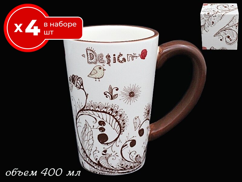 Набор из 4 кружек Lenardi птичий дворик 400 мл, керамика, чашки для чая и кофе 4 шт