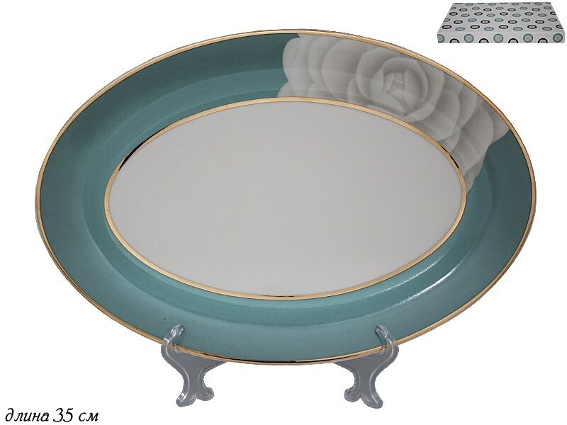 Овальное блюдо 35см. седая роза в подарочной упаковке фарфор lenardi.