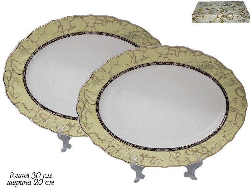 Набор из 2 овальных блюд 30см мрамор в подарочной упаковке Lenardi