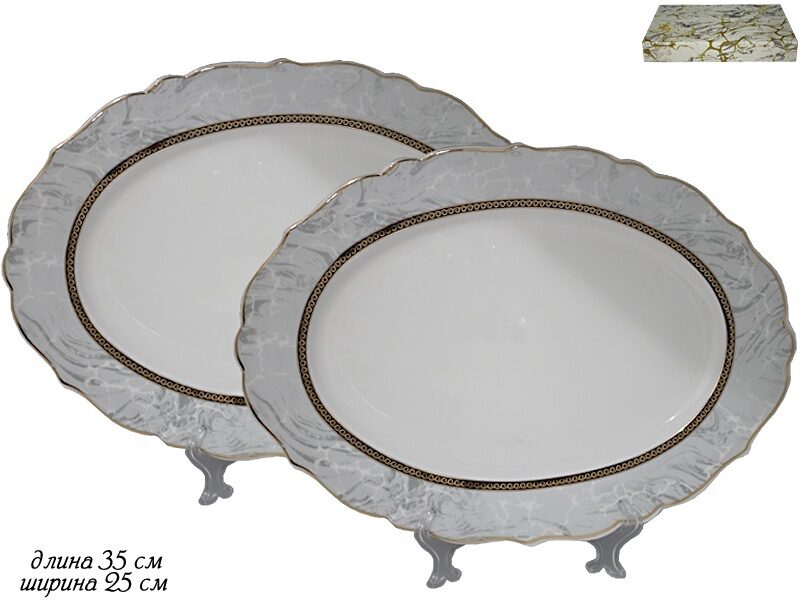 Набор из 2 овальных блюд 35см мрамор в подарочной упаковке lenardi.