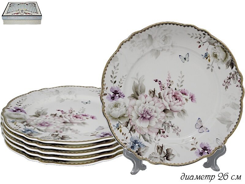 Набор из 6 тарелок 26см. хризантемы в подарочной упаковке фарфор Lenardi