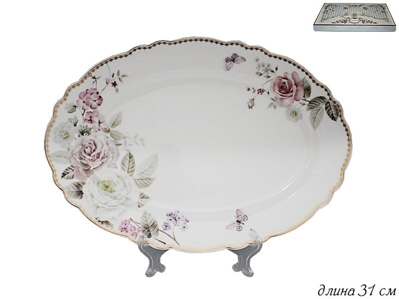 Шт овальное блюдо 31см.пионы в подарочной упаковке фарфор Lenardi
