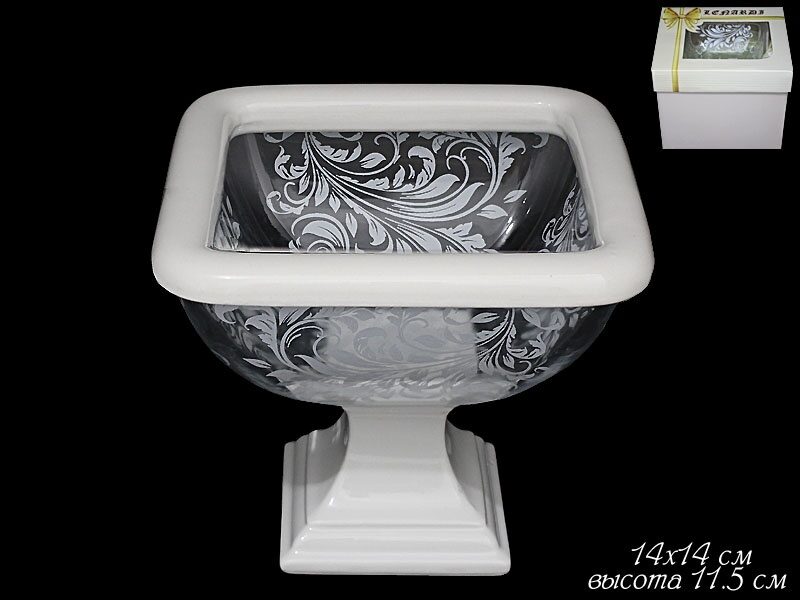 Конфетница на ножке 14см в подарочной упаковке стекло Lenardi