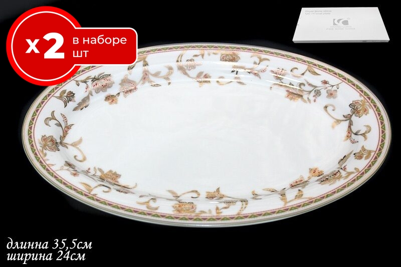 Набор блюд сервировочных овальных костяной фарфор золотой цветок для подачи блюд и сервировки стола Lenardi