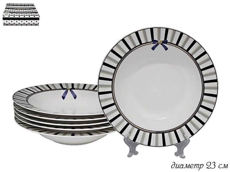 Набор из 6 глубоких тарелок 23см. Paris в подарочной упаковке фарфор Lenardi