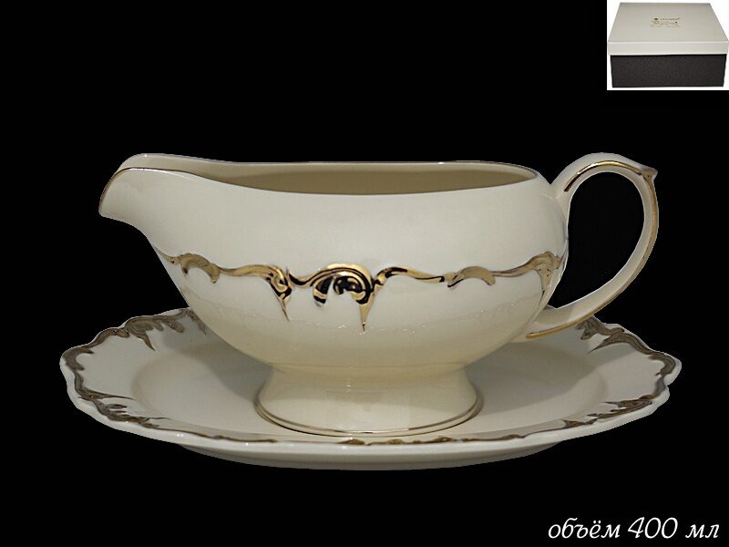 2шт соусник 400 мл с блюдцем амелия в подарочной упаковке фарфор Lenardi