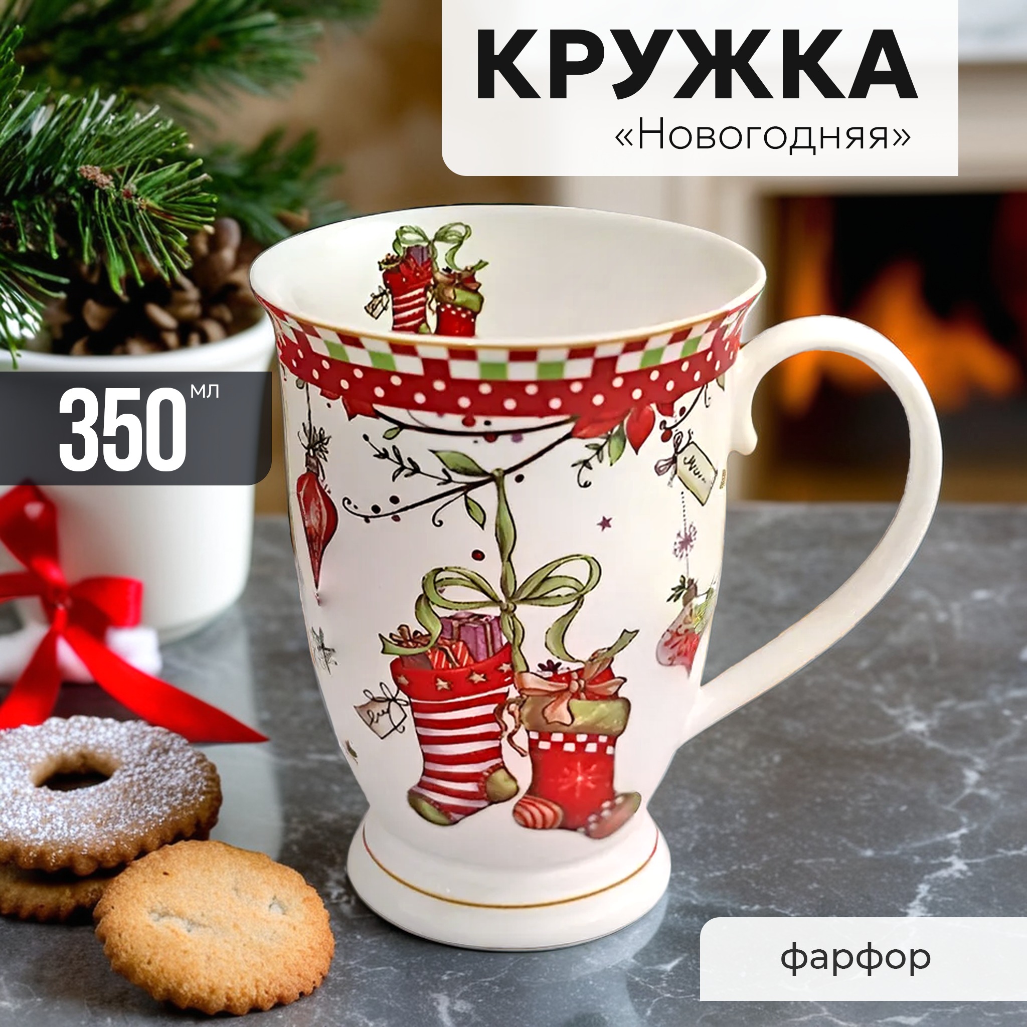 Кружка 350 мл новый год в подарочной упаковке фарфор Lenardi