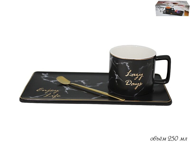 Чашка 250 мл с блюдцем и ложкой в подарочной упаковке Lenardi