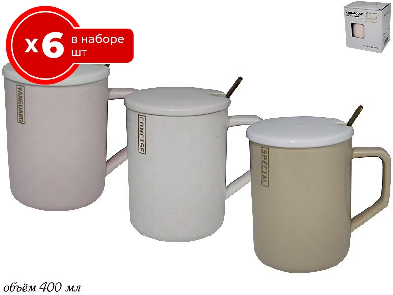 Набор из 6 кружек Lenardi Special 400 мл, фарфор, чашки для чая и кофе 6 шт