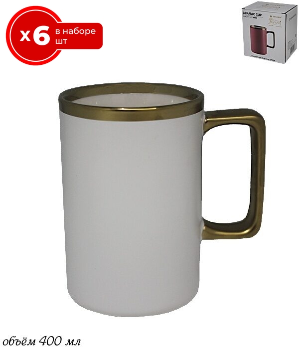 Набор из 6 кружек Lenardi Gold 400 мл, фарфор, чашки для чая и кофе 6 шт
