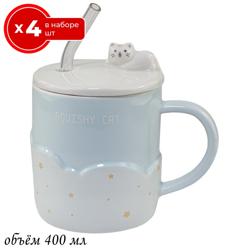 Набор из 4 кружек Lenardi Cat 400 мл, фарфор, чашки для чая и кофе 4 шт