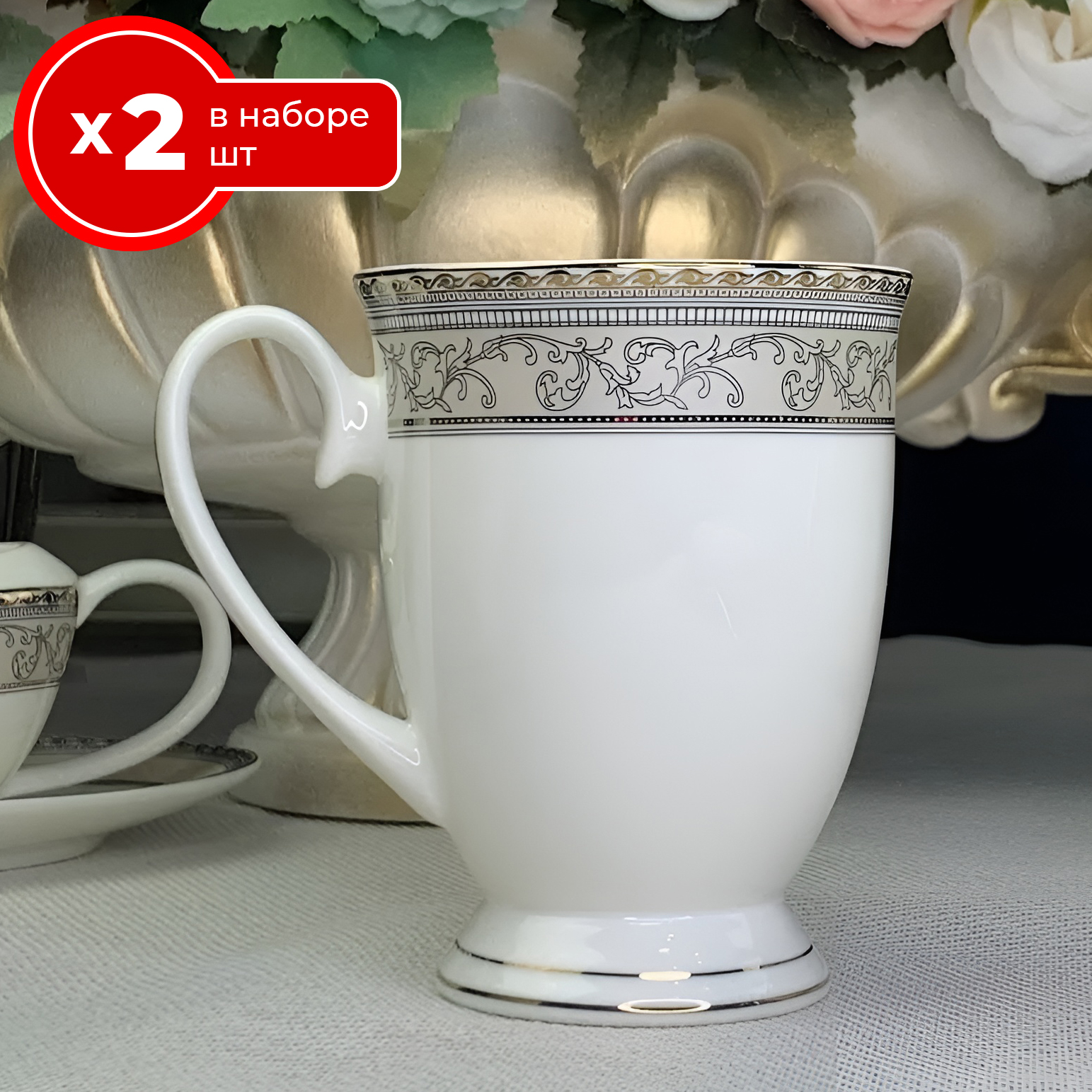 Набор из 2 кружек Lenardi элегант 350 мл, костяной фарфор, чашки для чая и кофе 2 шт
