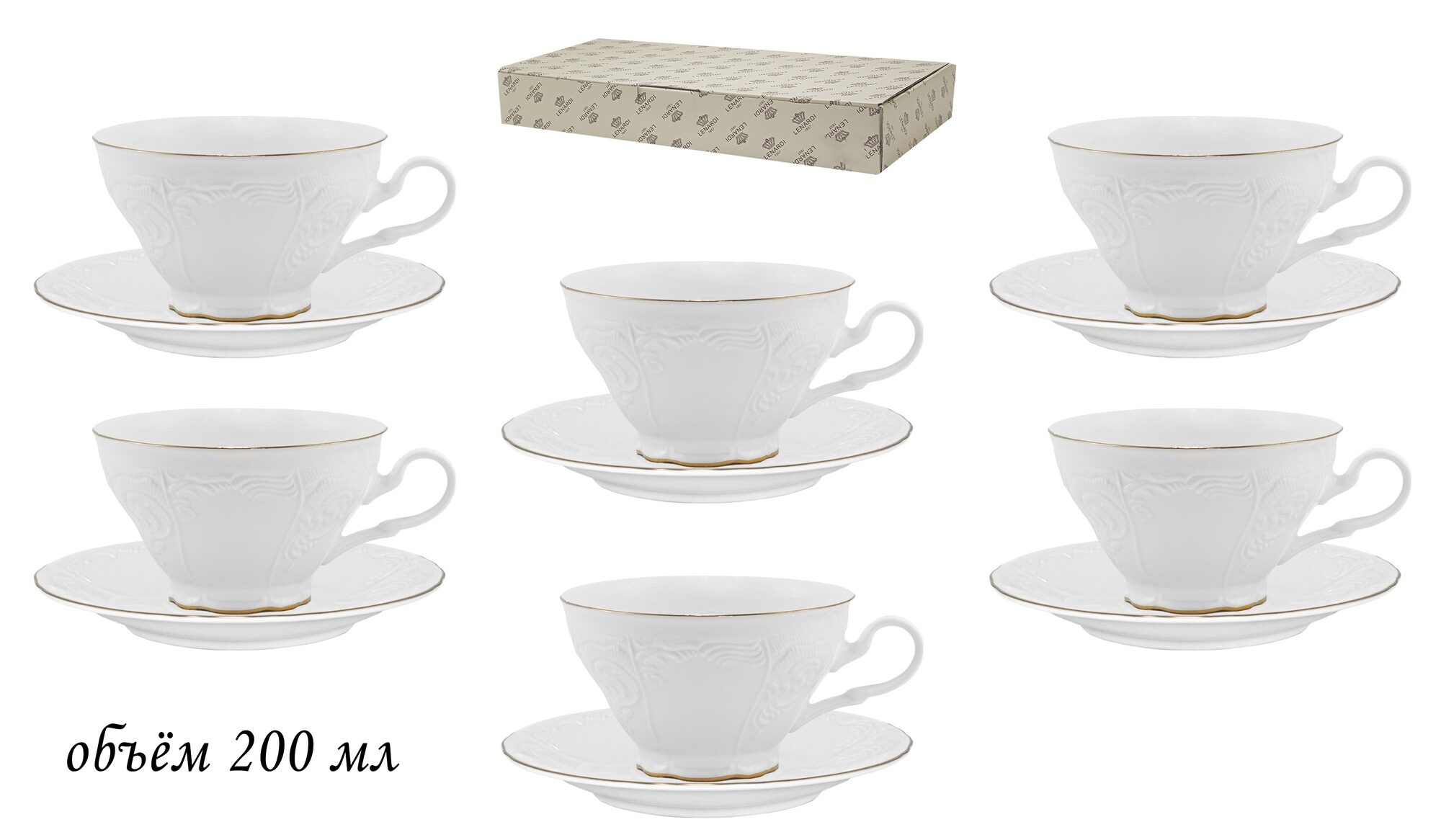 Чайный набор 200 мл, 12пр. maria gold в подарочной упаковке фарфор lenardi.