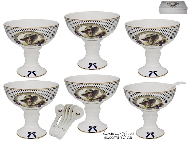 Набор из 6 креманок 10см. с ложками Paris в подарочной упаковке фарфор Lenardi