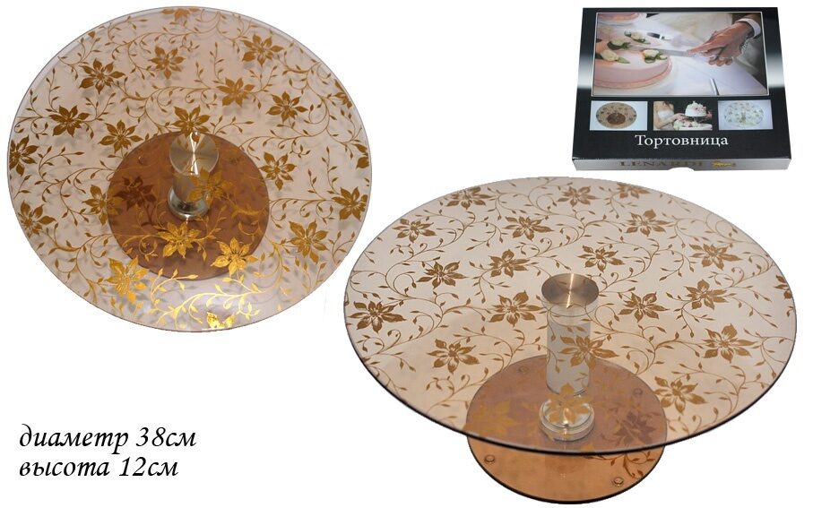 Тортовница вращающаяся на ножке 38см.золотой цветок тёмная lenardi.