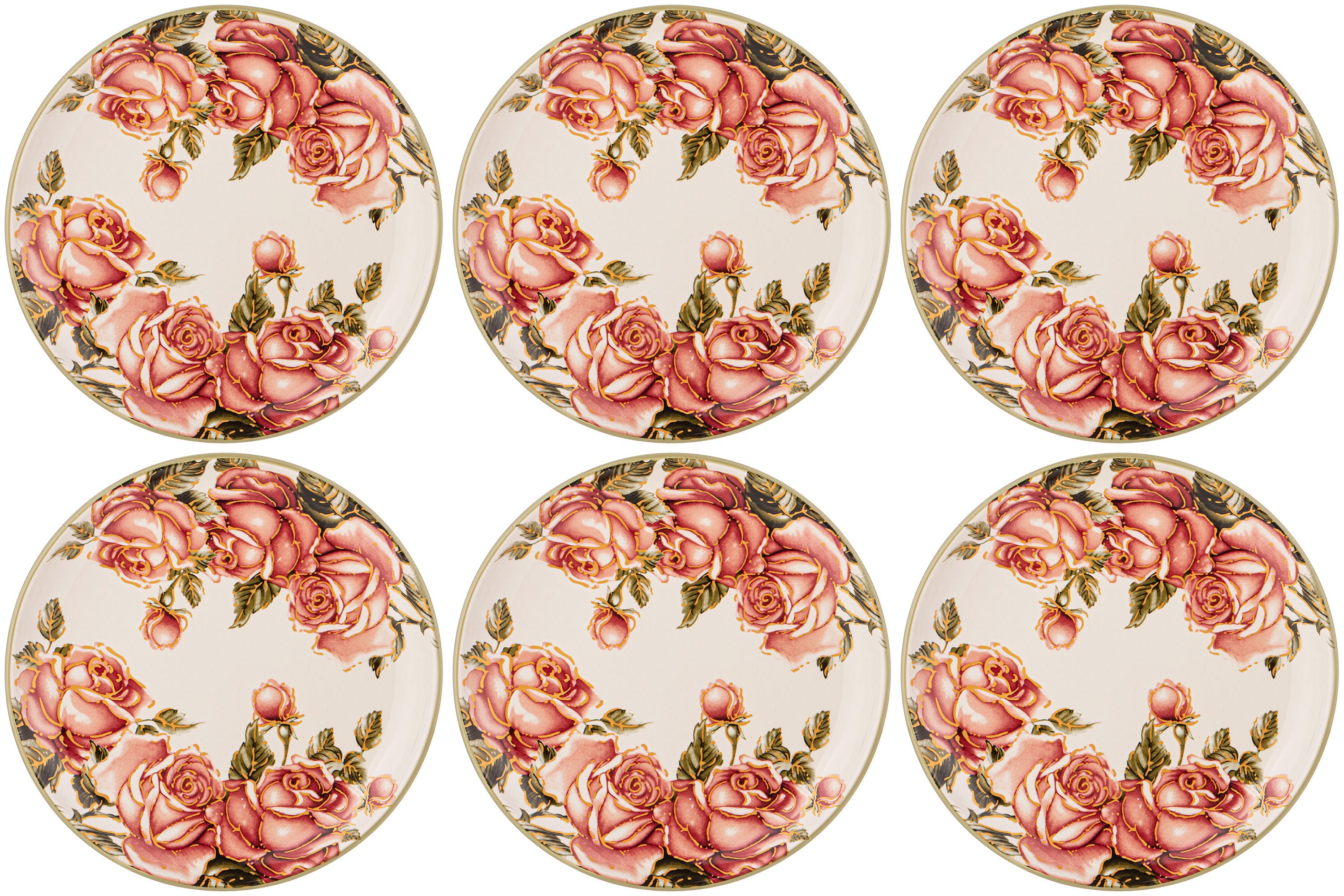 Набор тарелок сервировочных обеденных 26 см на 6 персон Agness корейская роза, керамика, столовые мелкие, закусочные белые, 6 шт