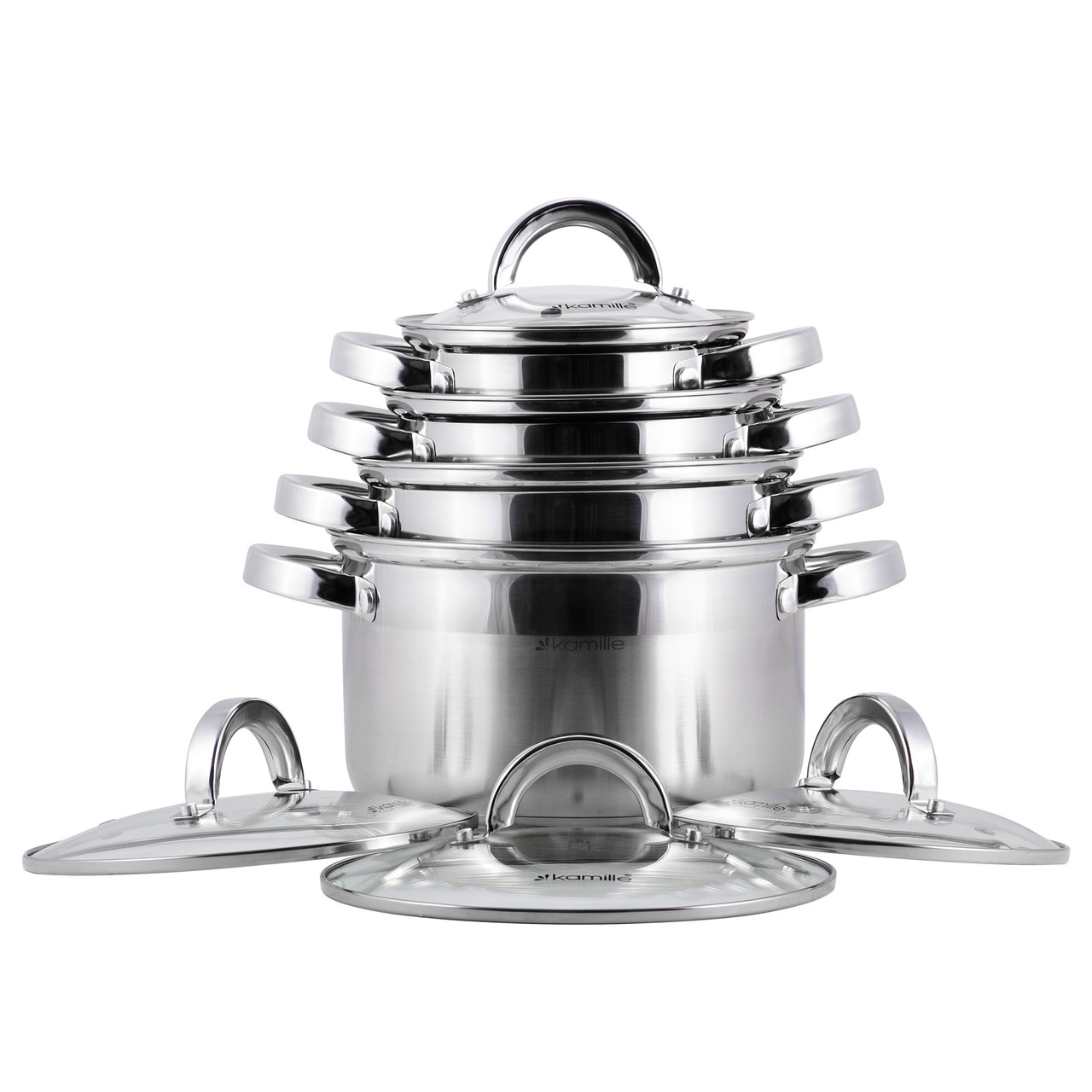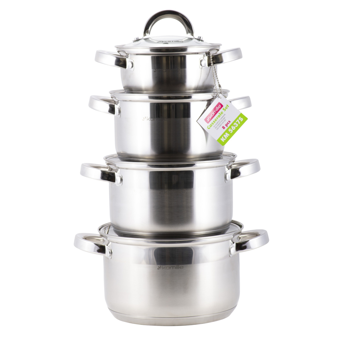 Набор кастрюль 8 предметов (1,0 л; 1,8 л; 2,5 л; 3,8 л) из нержавеющей ста