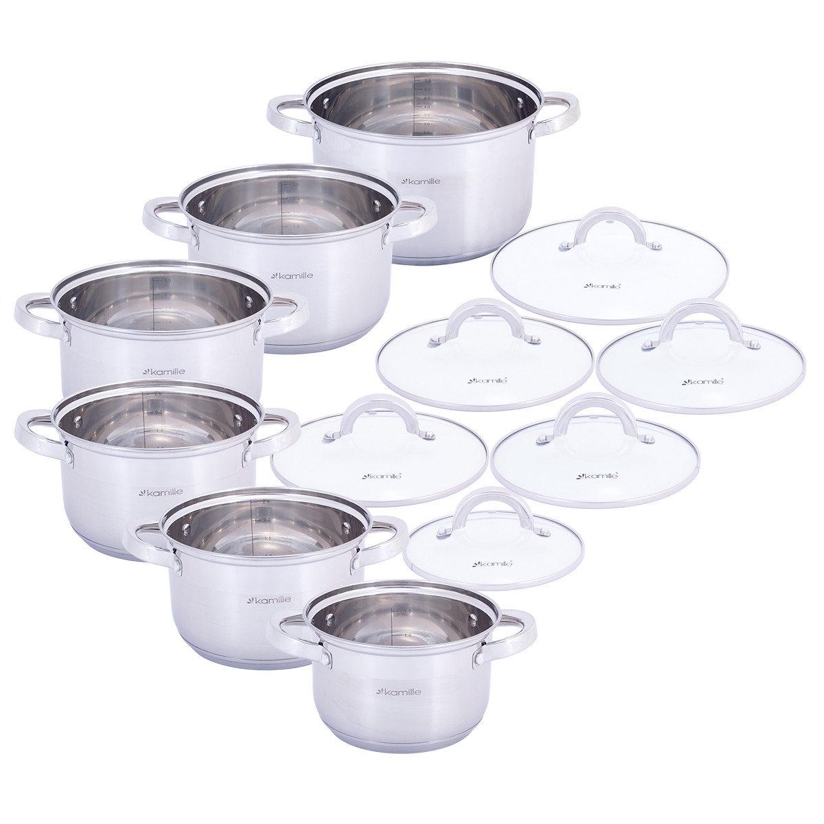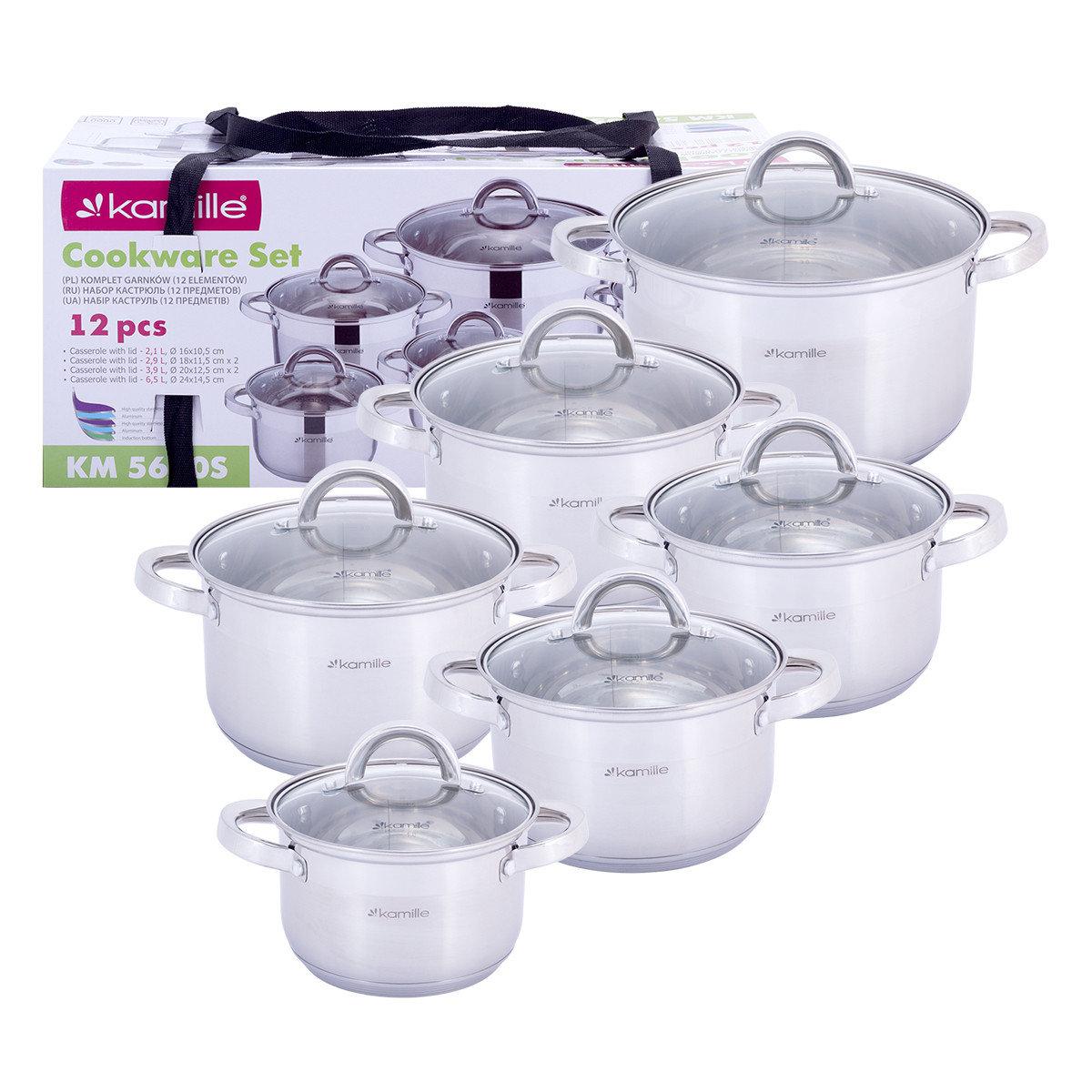 Набор посуды Kamille 12 предметов (кастрюли 1,8л, 2.5л, 2,5л, 3,8л, 3,8л,