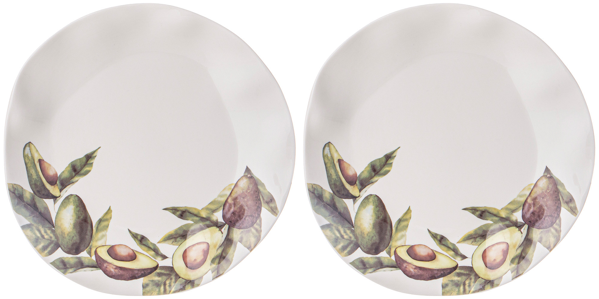 Набор тарелок сервировочных обеденных 26 см на 2 персоны Bronco авокадо, фарфор, столовые мелкие, закусочные белые, 2 шт