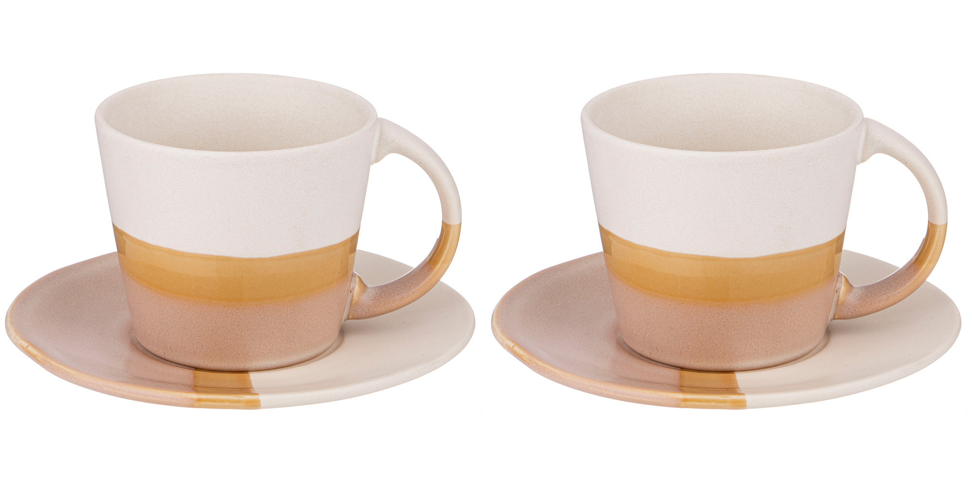 Чайный набор посуды на 2 персоны 275 мл Bronco Sunset 4 предмета, 2 чашки и блюдца, подарочный фарфор