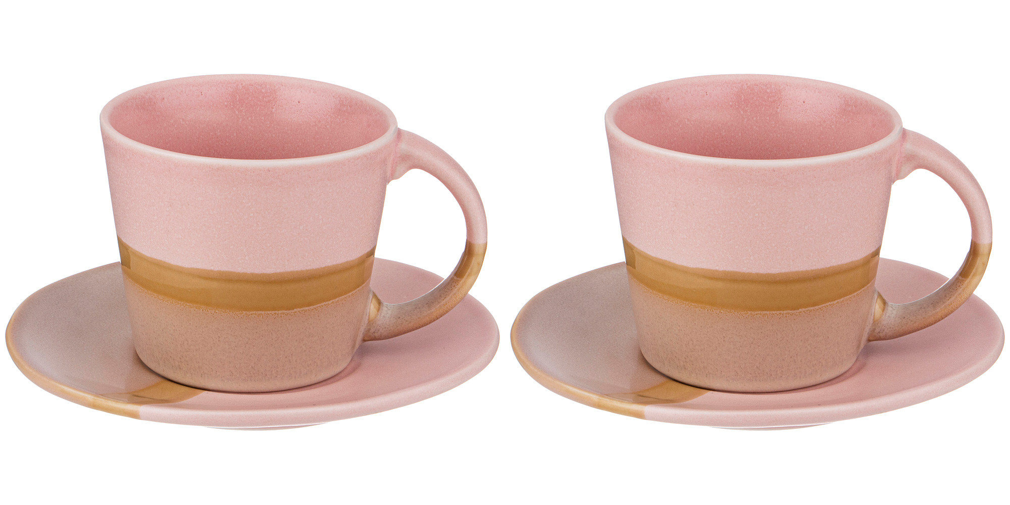 Чайный набор посуды на 2 персоны 275 мл Bronco Sunset 4 предмета, 2 чашки и блюдца, подарочный фарфор