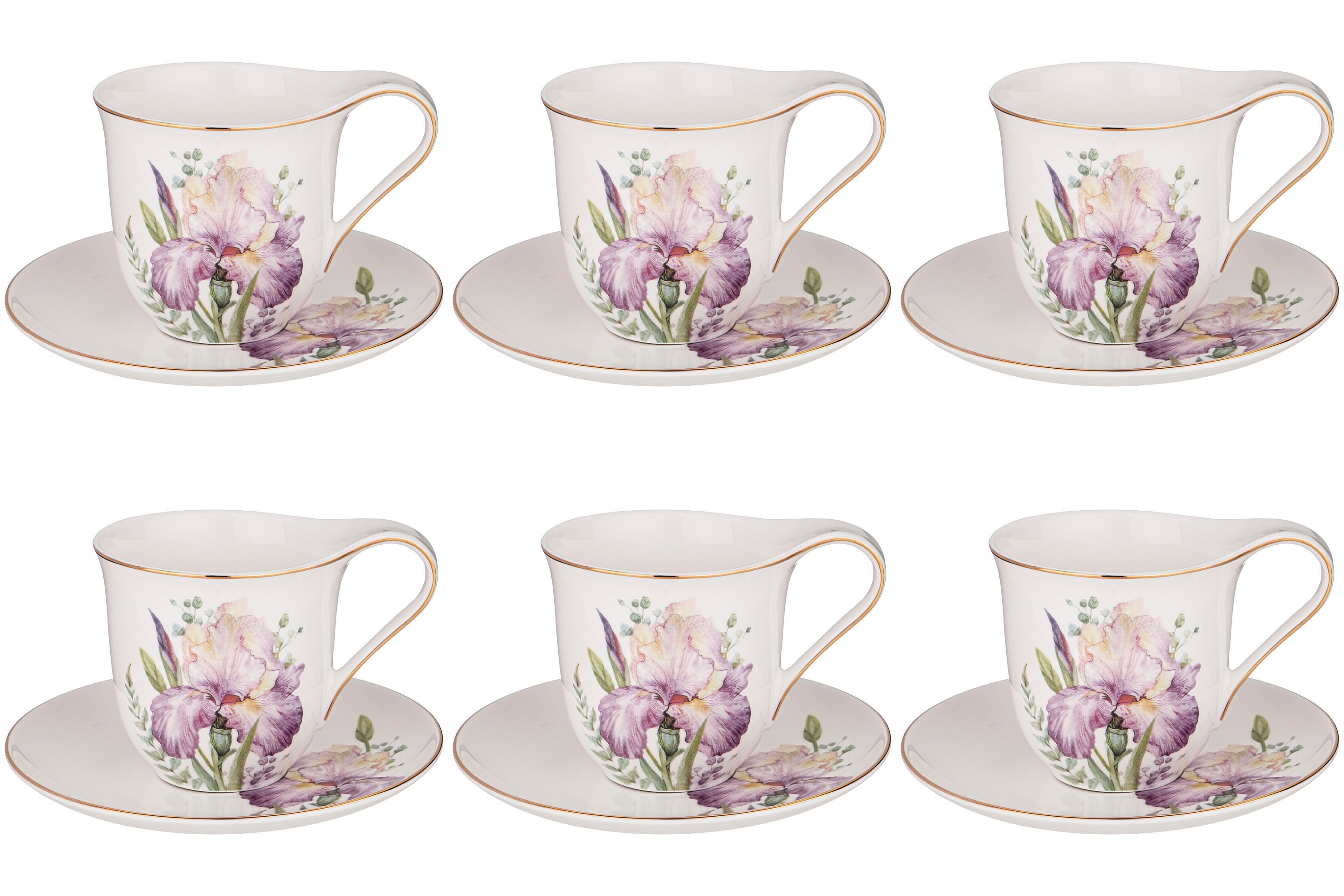 Чайный набор посуды на 6 персон 275 мл Lefard Irises 12 предметов, 6 чашек и блюдец, подарочный фарфор / кружки для чая и кофе