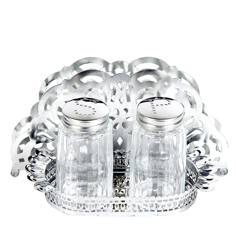 Набор для специй 2 пр (солонка, перечница) с салфетницей на металлической