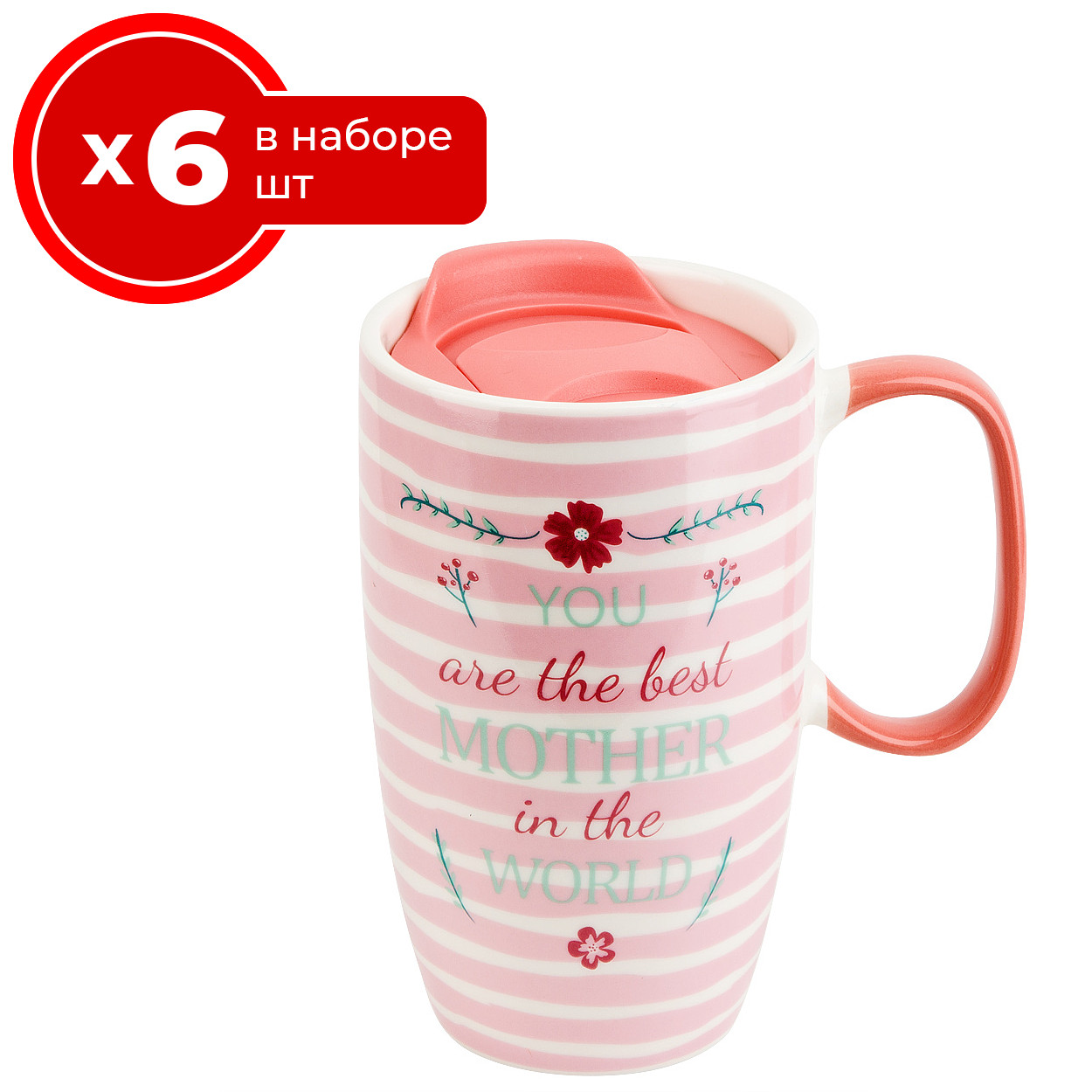Набор из 6 кружек Nouvelle лучшая мама в мире 500 мл, фарфор, чашки для чая и кофе 6 шт