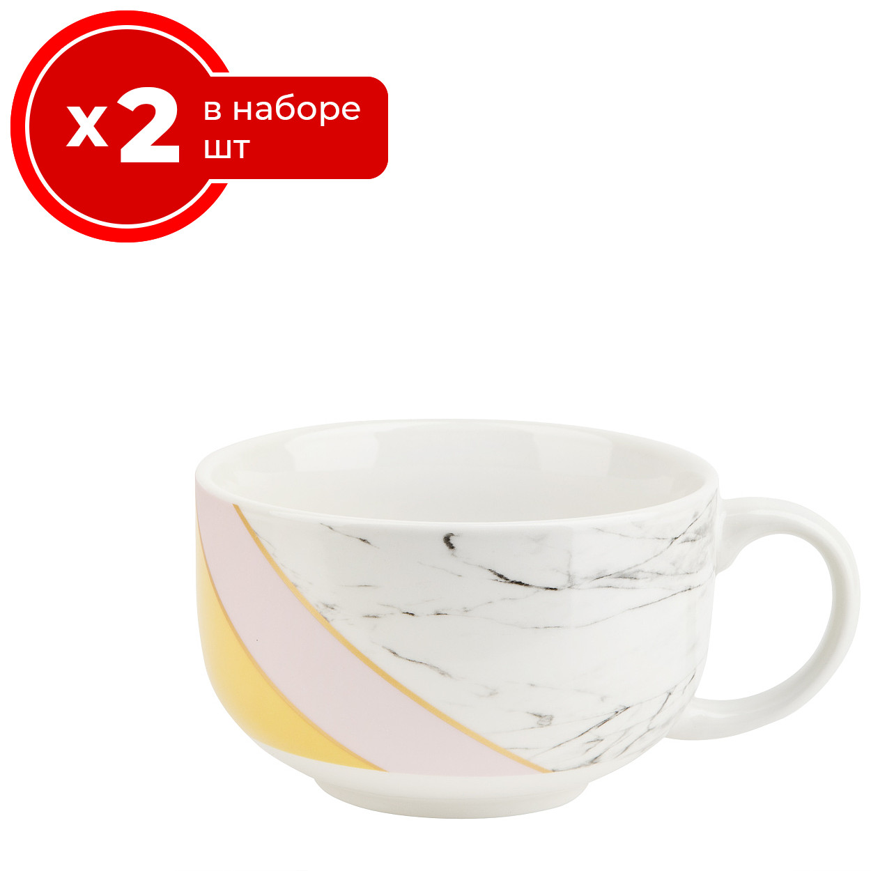 Набор из 2 кружек Nouvelle мрамор 500 мл, фарфор, чашки для чая и кофе 2 шт