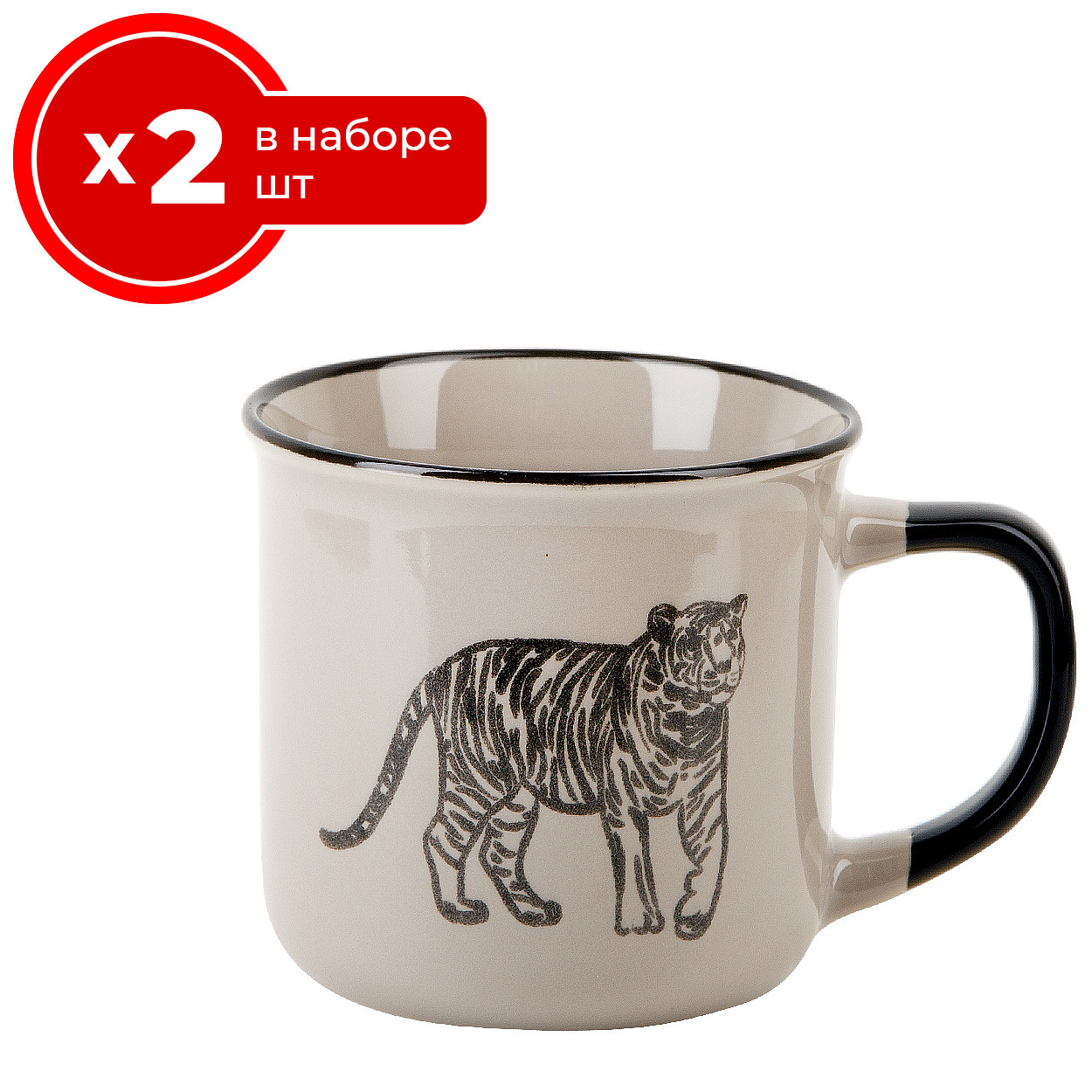 Набор из 2 кружек Nouvelle тигр 360 мл, фарфор, чашки для чая и кофе 2 шт