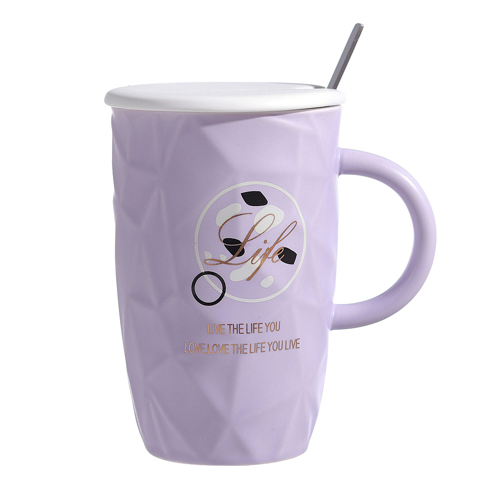 Кружка с крышкой и ложкой Life You Live (фиолетовый) V=430 мл (подарочная