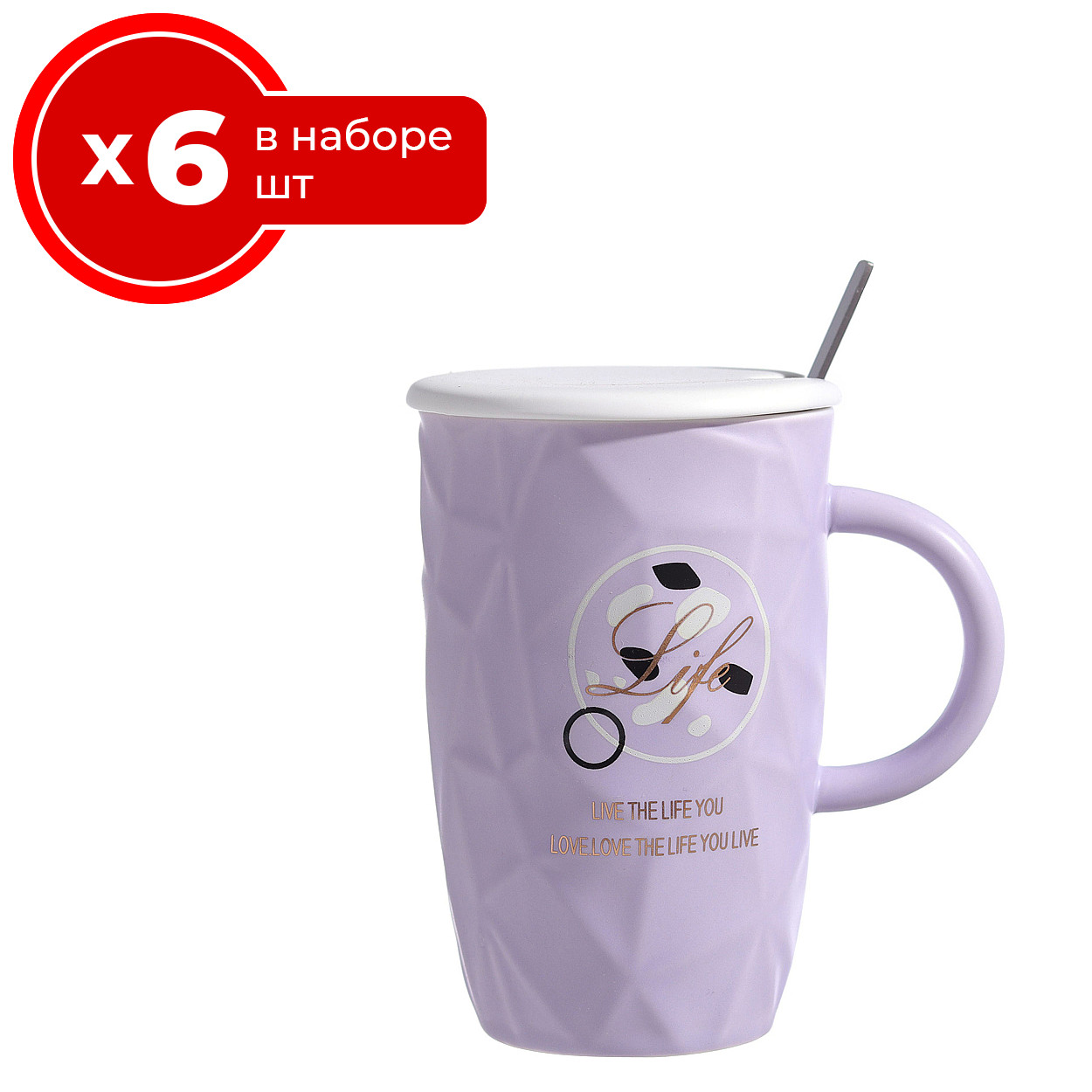 Набор из 6 кружек Nouvelle Life You Live 430 мл, фарфор, чашки для чая и кофе 6 шт